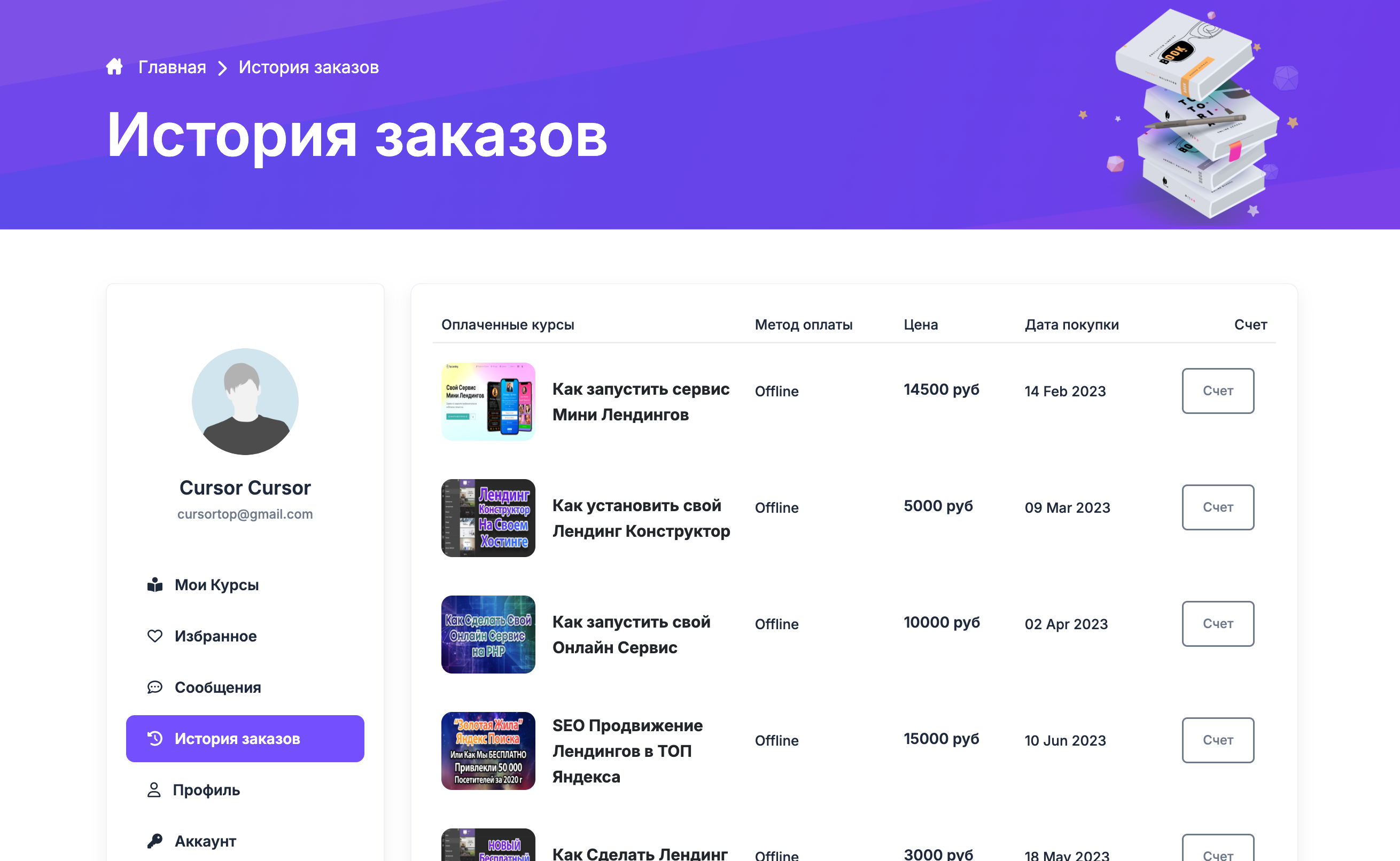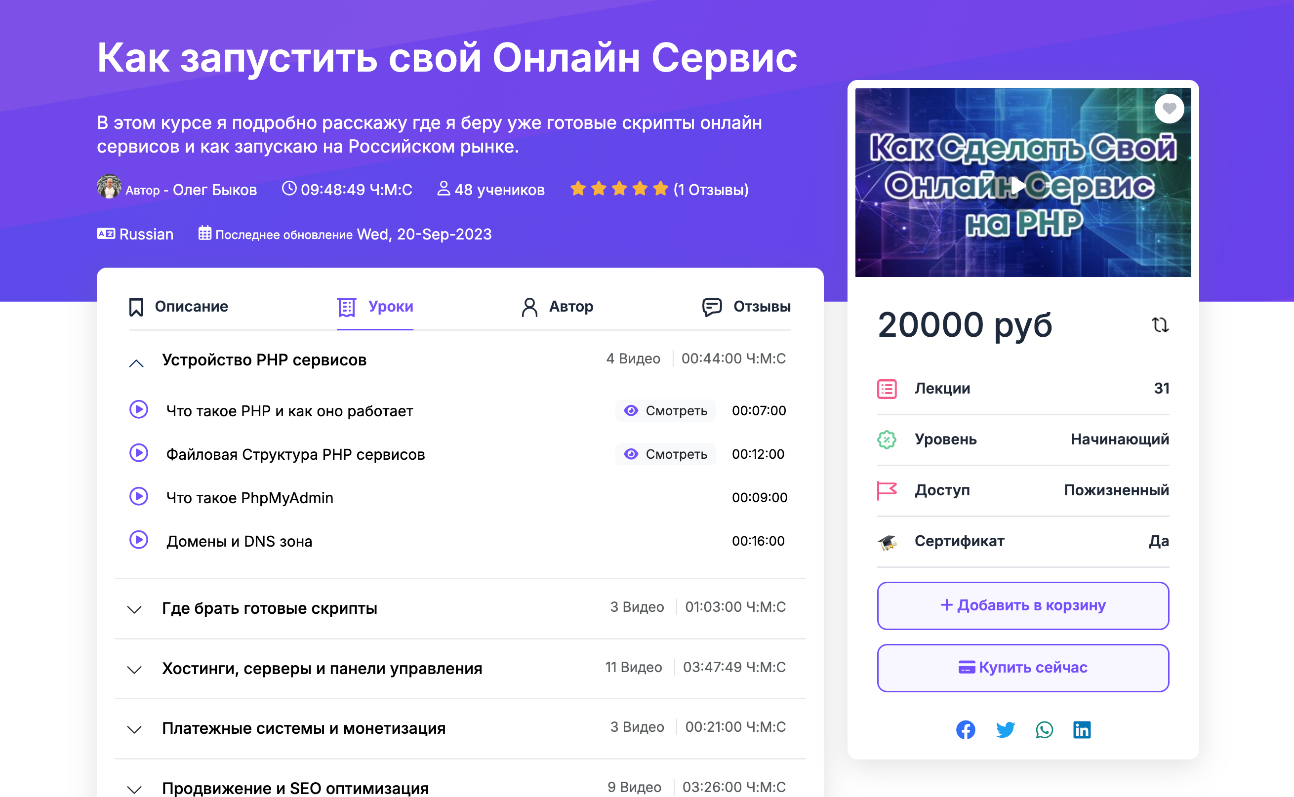 Поддержка экспертов: Возможность задать вопросы авторам курсов.