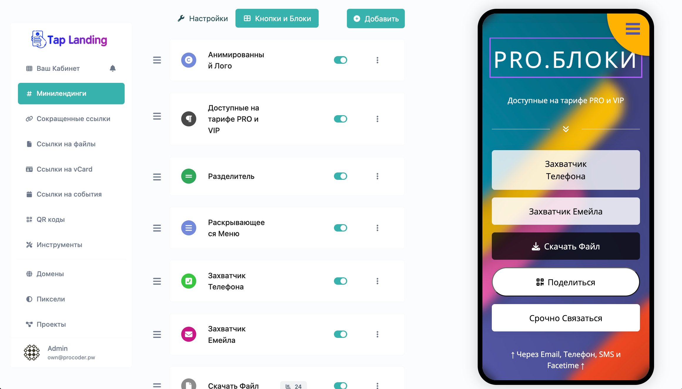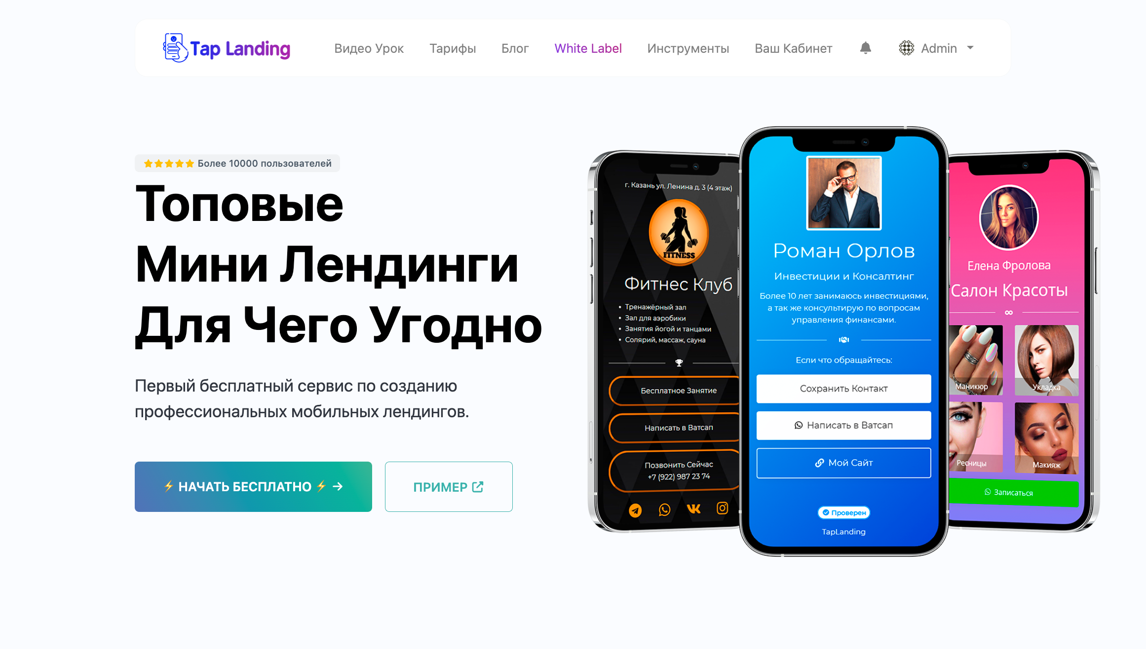 TapLanding.com – это сервис, предоставляющий инструменты для создания мини-лендингов, адаптированных для мобильных устройств. Эти лендинги могут использоваться как мультиссылки для профилей в социальных сетях, ссылки в рассылках через мессенджеры, или как электронные визитки с QR-кодами.