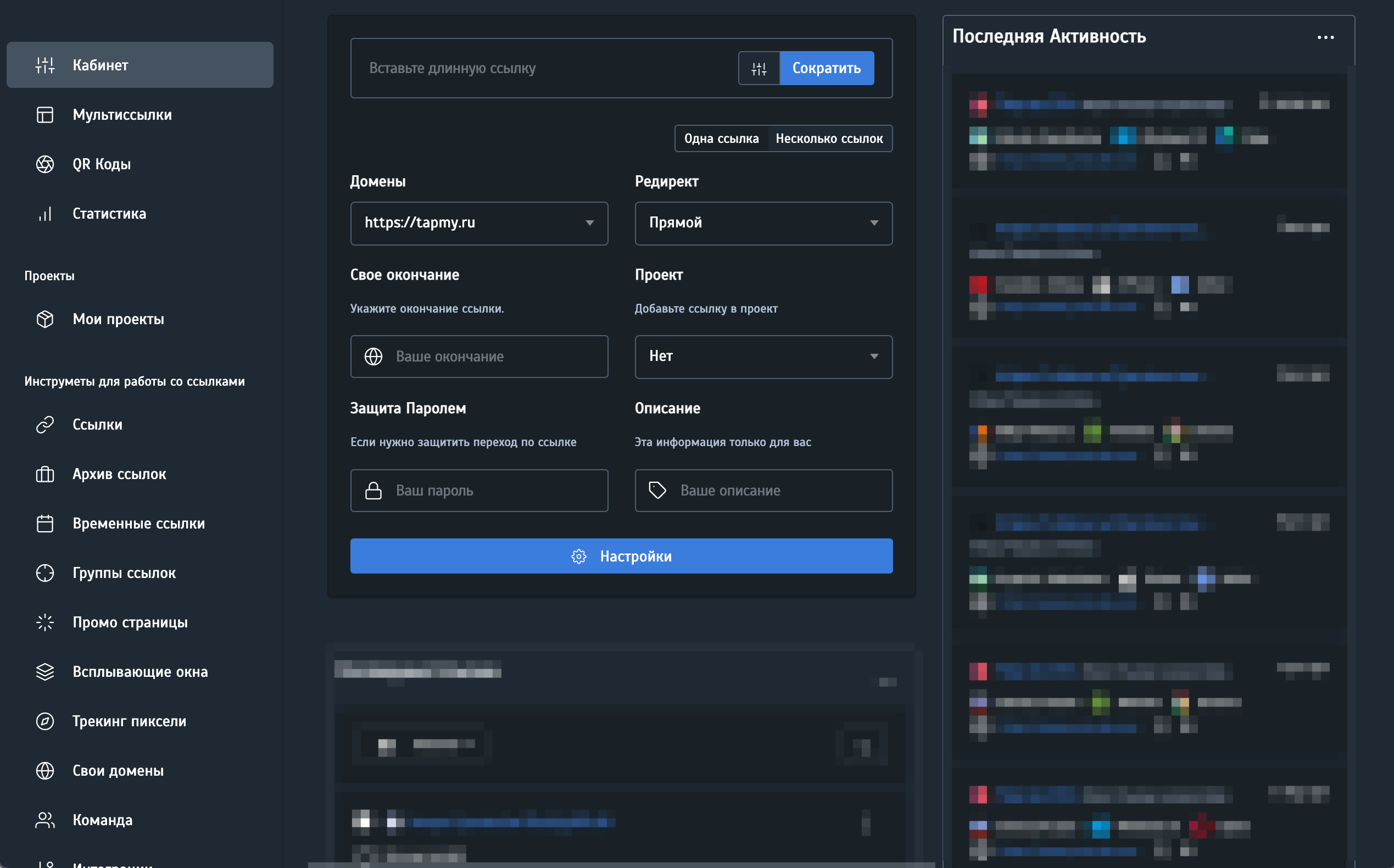 Tapny.ru – это бесплатный онлайн-сервис для сокращения длинных URL-адресов, предоставляющий удобные инструменты для управления и отслеживания ссылок.