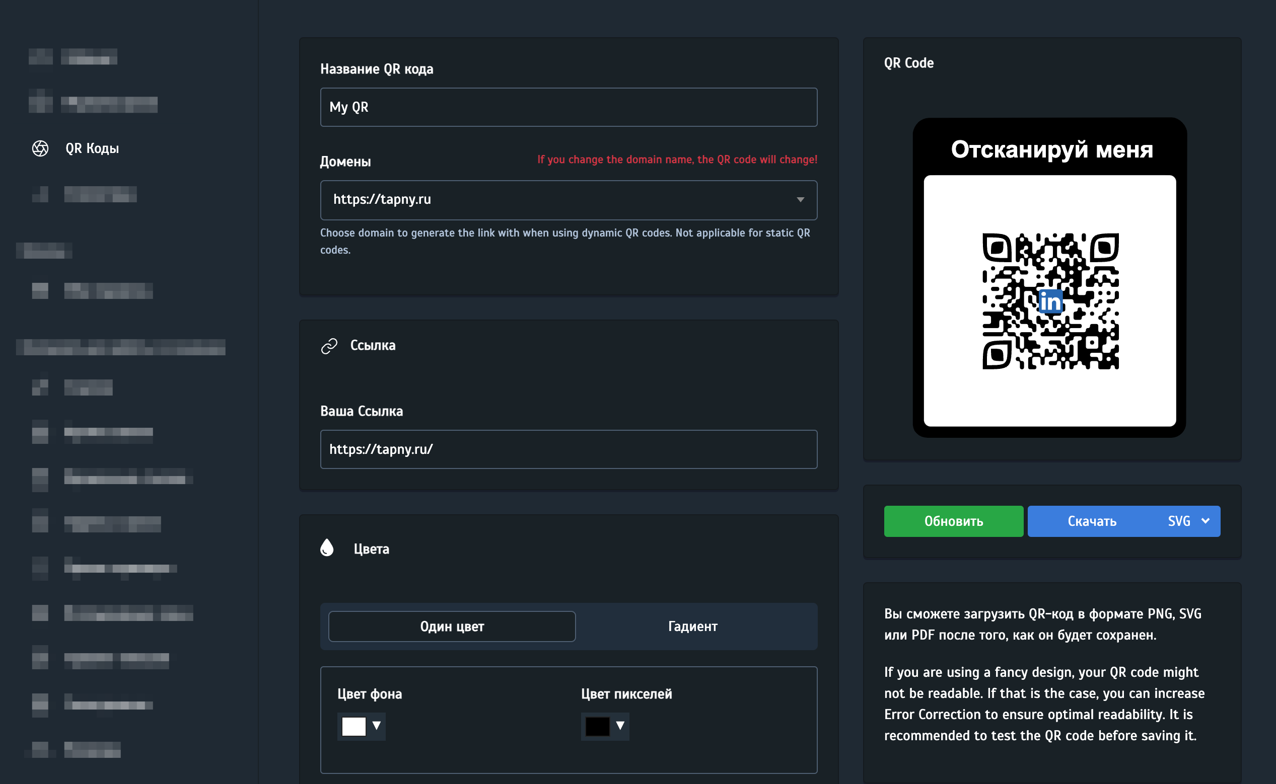 Генерация QR-кодов: Создание QR-кодов для упрощенного доступа к коротким ссылкам.