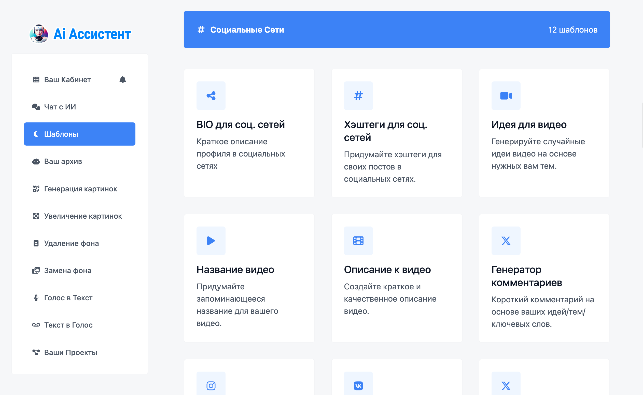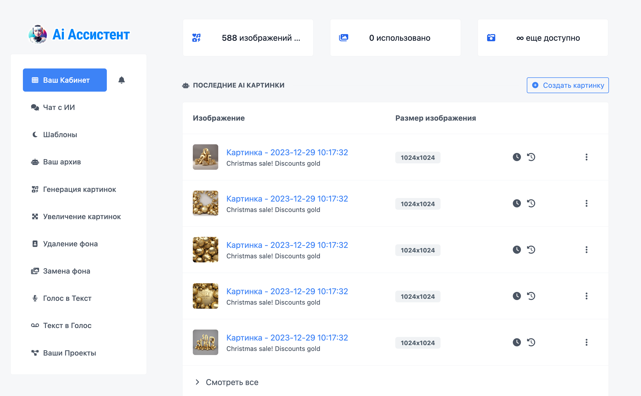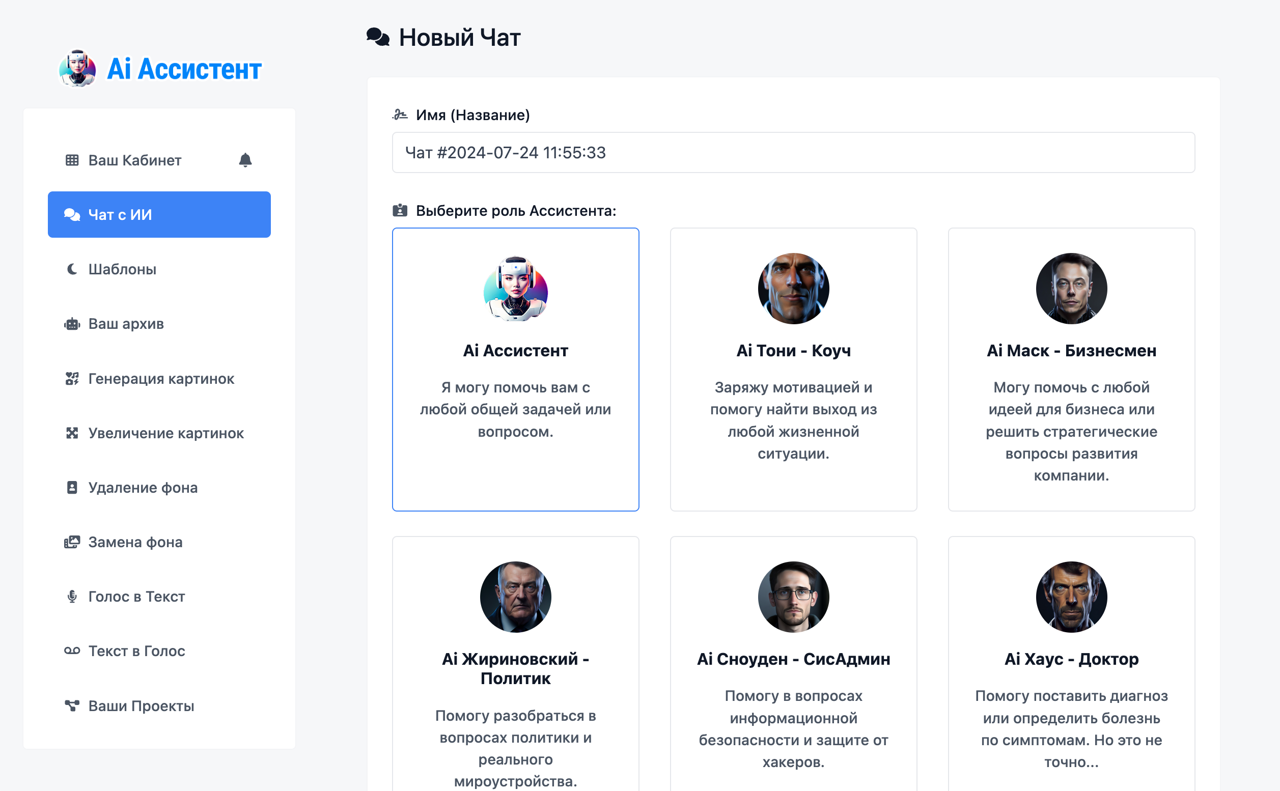 AI Assistant – это онлайн-сервис, предназначенный для использования ИИ в различных сферах деятельности. Сервис предоставляет инструменты для автоматизации создания контента, включая генерацию текстов, изображений и аудио.