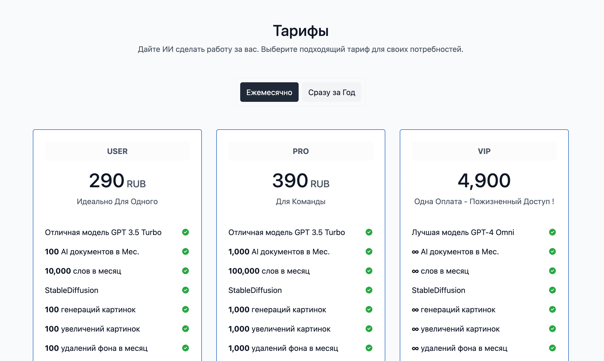 1. Базовый: 290 рублей в месяц, включает до 100 AI-документов.