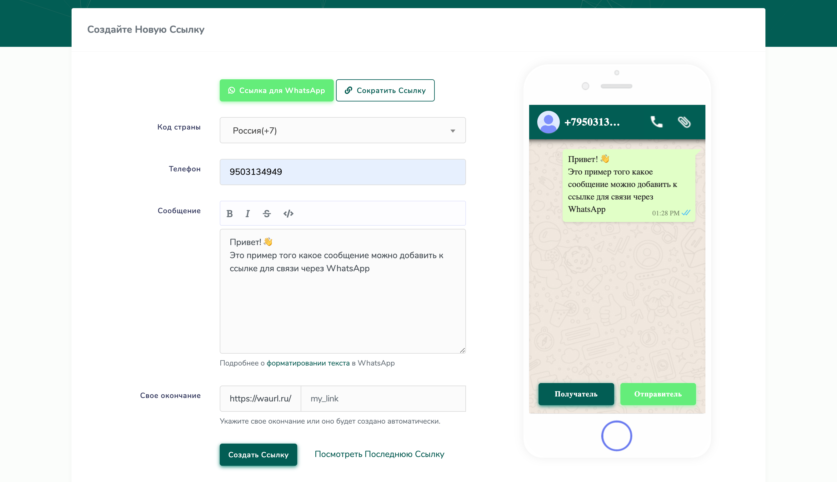 WAURL.ru – это сервис для создания коротких ссылок, которые ведут к сообщениям в WhatsApp. С его помощью пользователи могут генерировать уникальные ссылки с заранее подготовленным текстом, чтобы легко связываться с другими через WhatsApp. Сервис поддерживает создание QR-кодов для этих ссылок, что упрощает их распространение и использование.